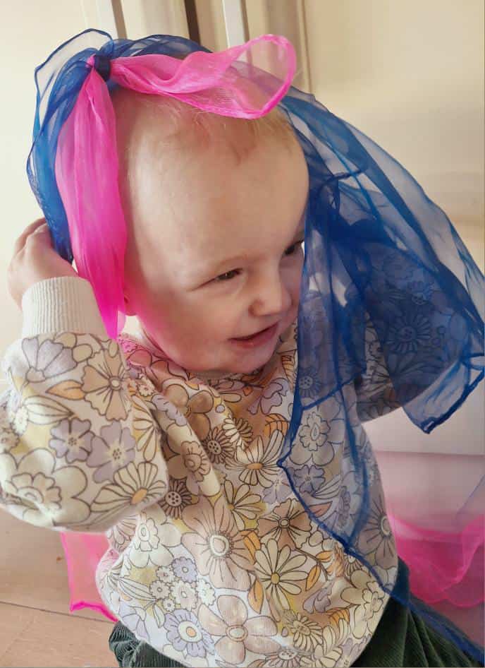 De veelzijdige sensorische danssjaaltjes vormen een uitnodigende manier om je kleintje actief te betrekken bij zijn/haar zintuigelijke ontdekkingstocht. Door de fijne stof en de heldere kleuren dagen de sensorische danssjaaltjes de zintuigen van jouw kleintje uit op een speelse manier. De sensorische danssjaaltjes zijn eindeloos in te zetten: wuif ze door de lucht, laat ze zachtjes over de huid glijden of gebruik ze bij interactieve spelletjes.